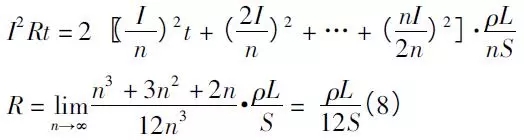 式中:ρ為集流體的電阻率,dx為每一段的長度,A為集流體的橫截面積??捎上率接嬎阍诩黧w上的總熱量Q,計算在集流體上的熱等效內(nèi)阻R.