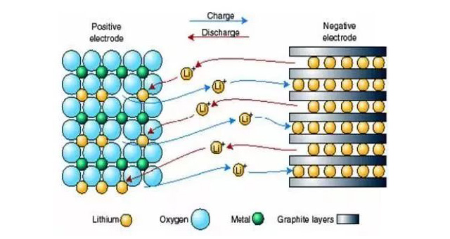 在鋰離子電池的充放電過程中,鋰離子處于從正極→負極→正極的運動狀態(tài)。這就像一把搖椅,搖椅的兩端為電池的兩極,而鋰離子就在搖椅兩端來回運動。所以鋰離子電池又叫搖椅式電池。
