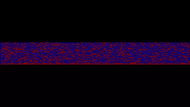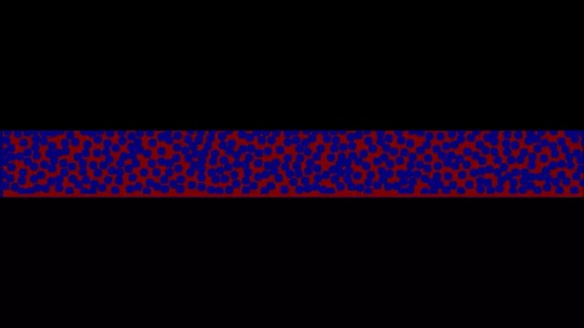 電極電解液浸潤的數(shù)值模擬主要采用格子波爾茲曼方法,首先根據(jù)電極的微觀結(jié)構(gòu)或者隨機生成電極幾何模型,如圖6所示。然后設(shè)置流體入口、出口、相關(guān)邊界條件等,計算流體在電極孔隙內(nèi)的流動過程。圖7是采用格子波爾茲曼方法模擬的正極和負(fù)極極片的電解液浸潤動畫,模擬結(jié)構(gòu)表明,負(fù)極浸潤過程比正極更快,但是正極最后的電解質(zhì)飽和水平高于負(fù)極。文獻報道使用這種方法還研究了電極壓實密度對電解液浸潤的影響,特殊電極結(jié)構(gòu)的電解液浸潤過程,電解液種類的影響等。